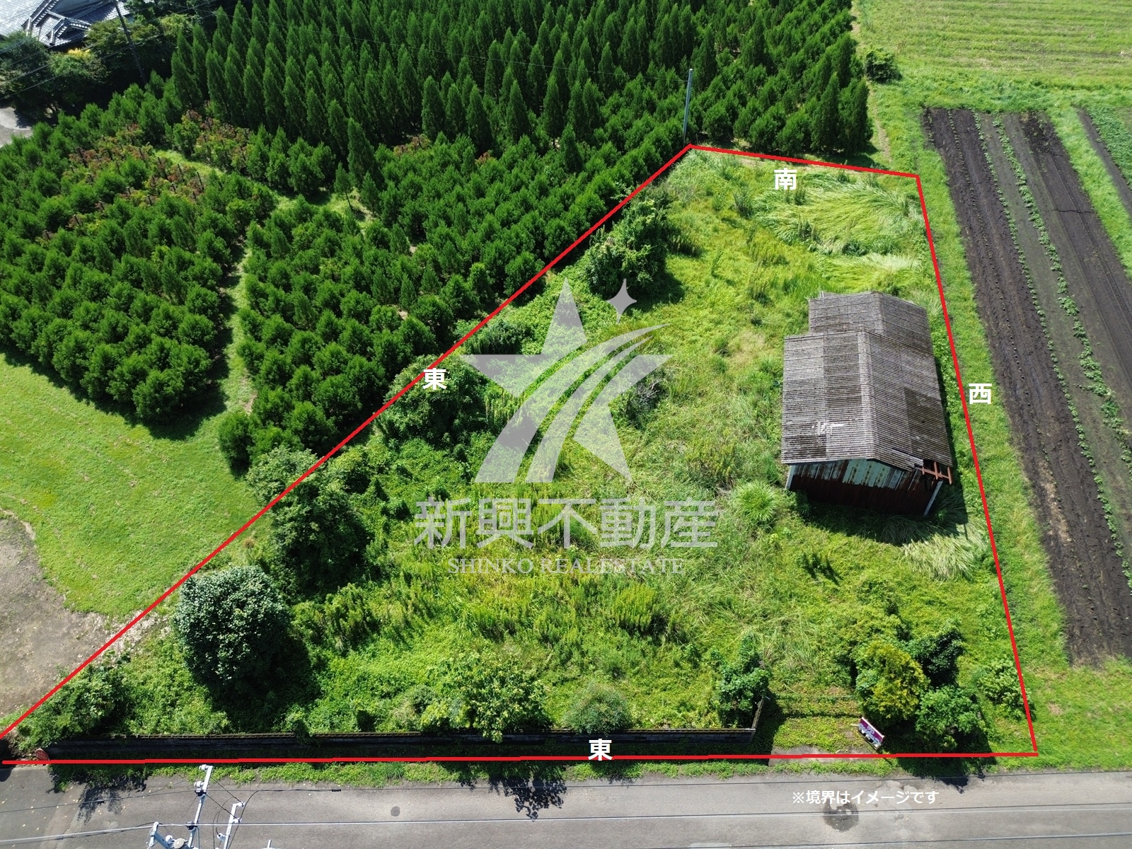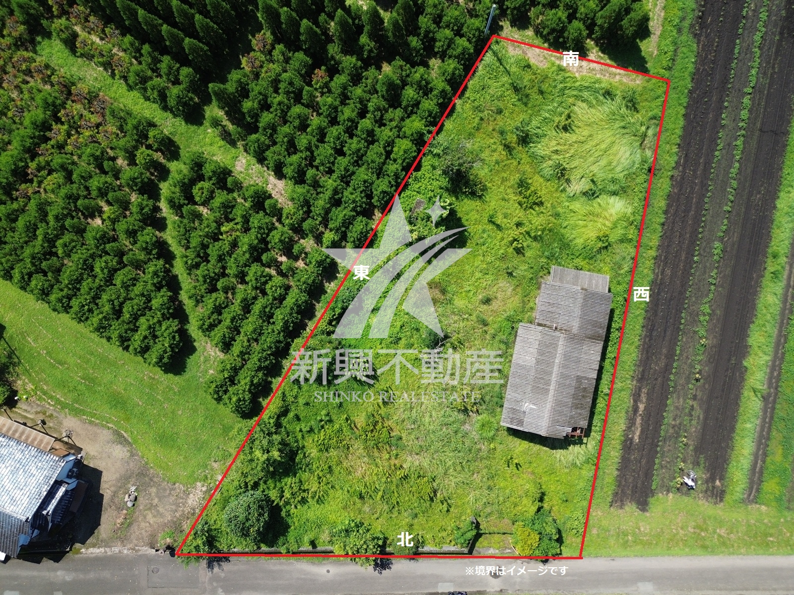 約322坪と広さのある土地で、作業小屋が建っています。農地法許可要。 | ||