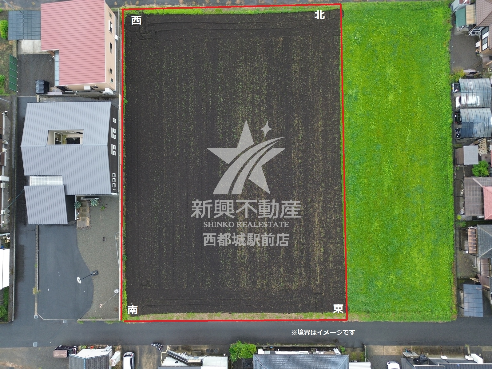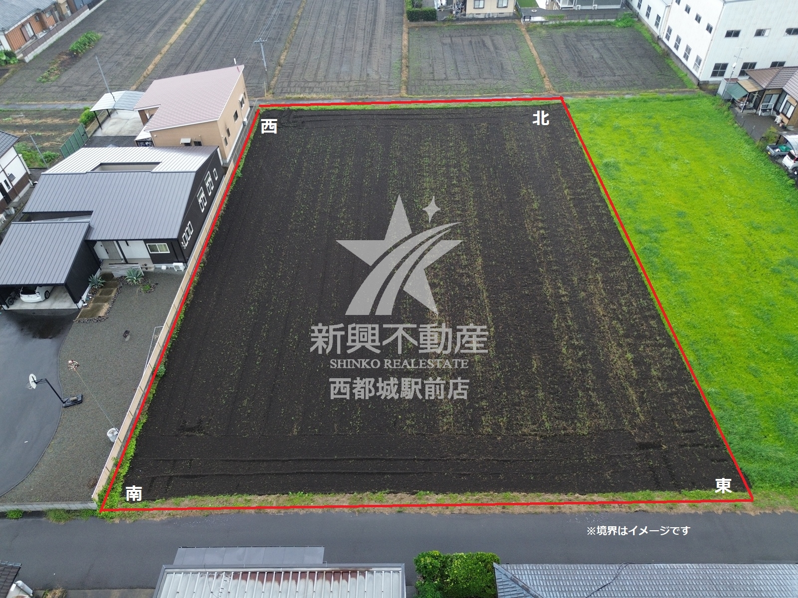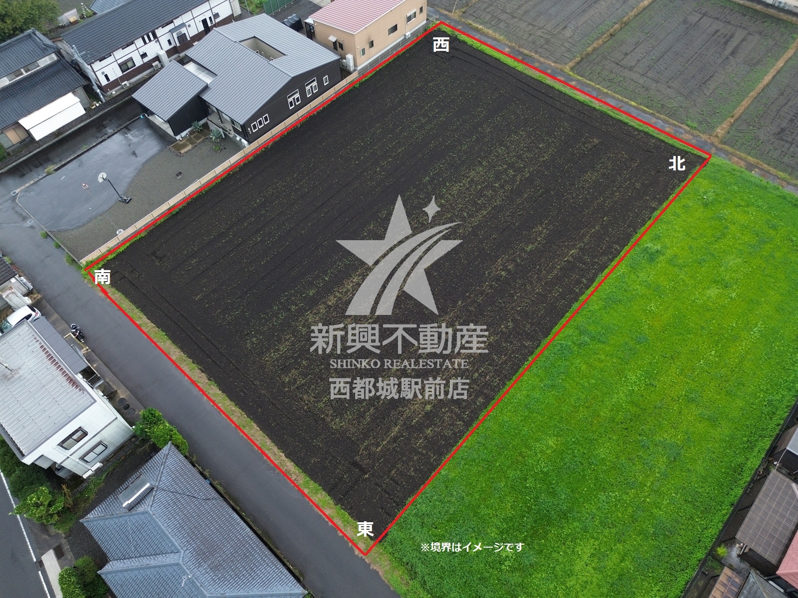 二方(除角地) 南東 5m 公道に 35m 接する 北西 5m 公道に 35m 接する | ||